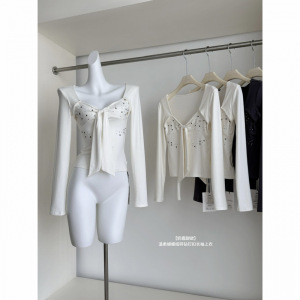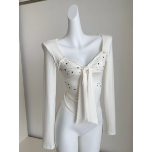 奶霜甜欲温柔蝴蝶结高温切割闪钻长袖上衣