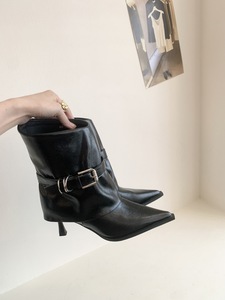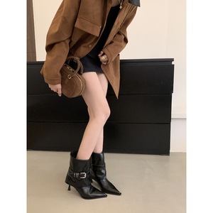 法式气质尖头高跟短靴女2025新款皮带扣设计感细跟裤管靴骑士短靴