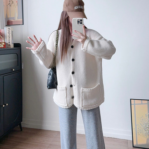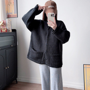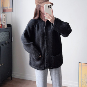 复古文艺慵懒风针织开衫女秋冬季新款韩系简约宽松设计感毛衣外套