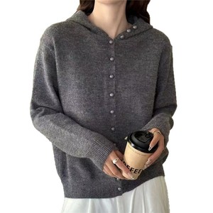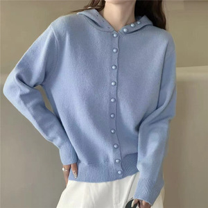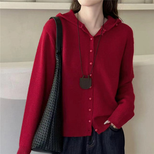 连帽毛衣开衫女秋季新款高级感外穿短款软糯针织衫帽衫上衣外套