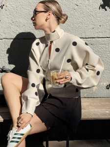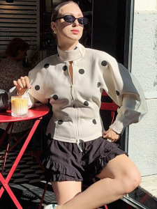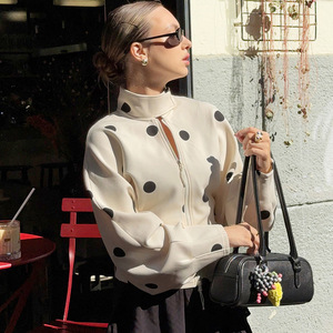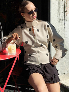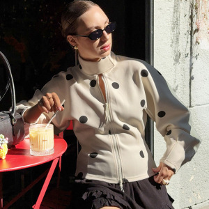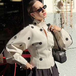 秋冬新款波点收腰外套女设计感高领拉链夹克气质时尚2025跨境通勤