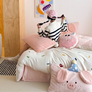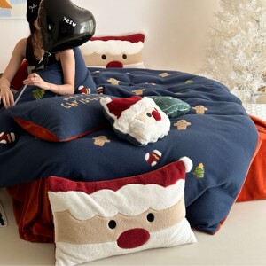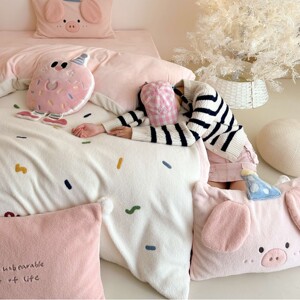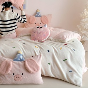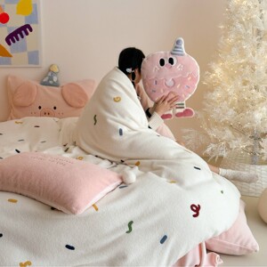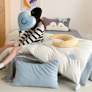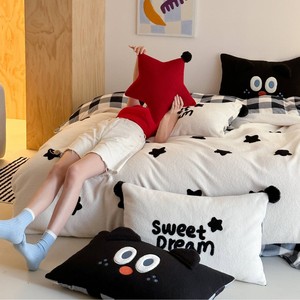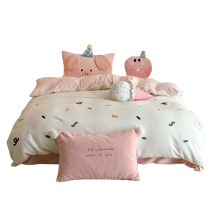【香龄优品】可爱ins风仿羊毛绒卡通毛巾绣四件套床单被套床品