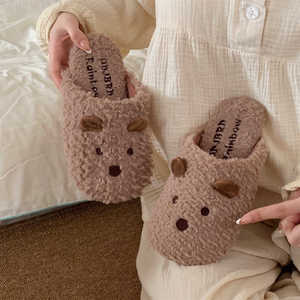 少女心情侣居家保暖静音地板毛毛拖鞋舒适冬季软萌小狗棉拖鞋男女