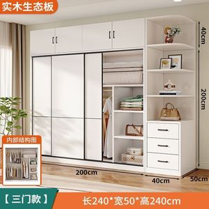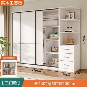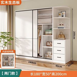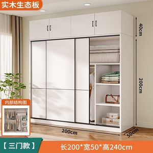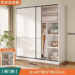 衣柜家用卧室实木推拉门小户型柜子简约现代儿童简易组装木质衣橱