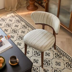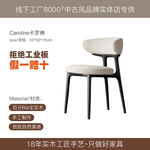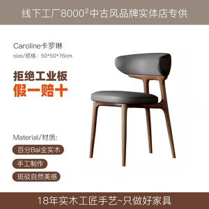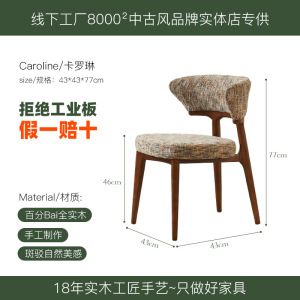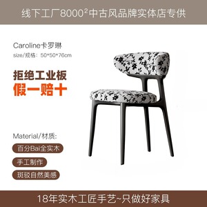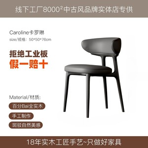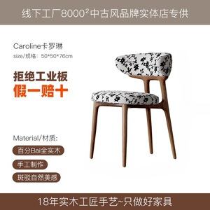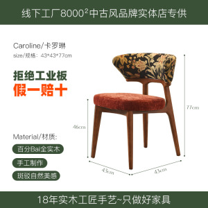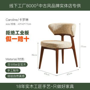 法式中古奶油风实木餐椅家用靠背北欧简约设计师美式复古布艺椅子
