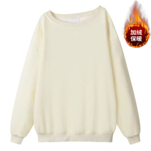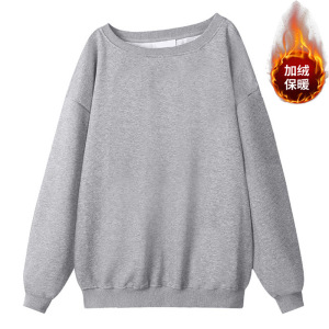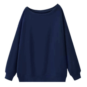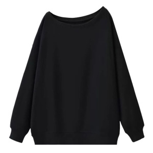 跨境露肩斜领卫衣女春秋季新款中长款宽松慵懒风长袖上衣大码女装
