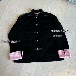 25秋季新款女士新中式丝绒立领夹克薄款国潮盘扣休闲外套0919u2