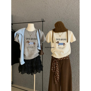 塞纳【WGWE】7212秋季韩版宽松显瘦圆领针织短袖T恤休闲百搭毛衣