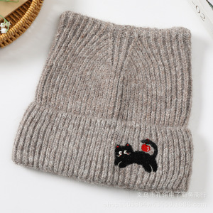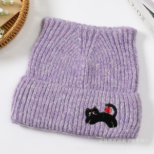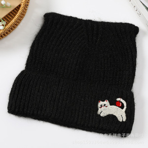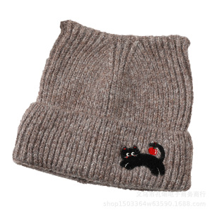 黑色针织帽女日系甜美小猫刺绣毛线帽秋冬保暖显脸小猫耳朵套头帽