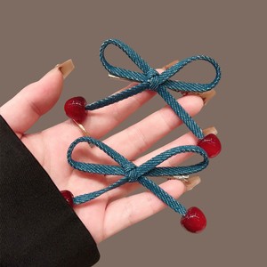 樱桃牛仔蝴蝶结发夹女复古百搭一字发卡高级感精致红珠鸭嘴夹子
