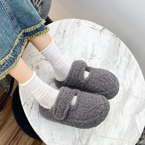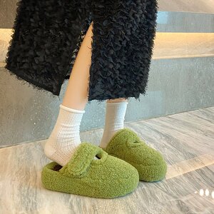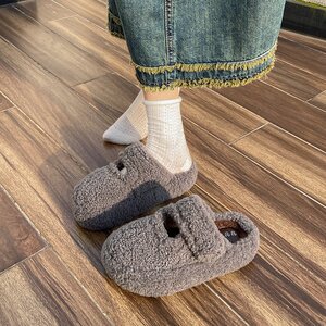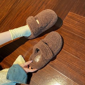 包头半拖鞋女外穿厚底增高复古2025秋冬新款百搭保暖时尚毛毛棉拖