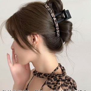 法式老钱风复古豹纹一字抓夹轻奢后脑勺盘发鲨鱼夹时尚发夹发饰女