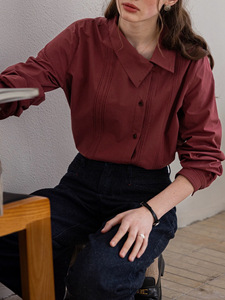 Dailyart“闲日柔彩”自然呼吸100棉百褶斜门襟歪领长袖衬衫女上
