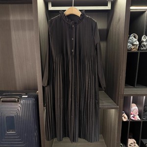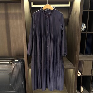 秋季新款宽松显瘦压褶圆领简约慵懒文艺风优雅温柔休闲百搭连衣裙