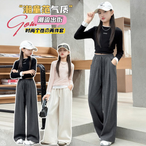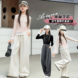女童秋装休闲裤2025新款韩版洋气童装裤子女孩春秋宽松阔腿裤长裤
