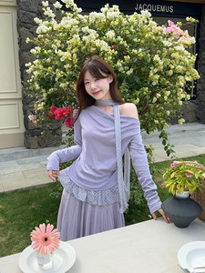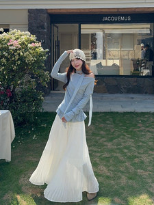 大码韩剧穿搭套装女秋季露肩上衣胖MM遮肚显瘦白色半身裙子两件套