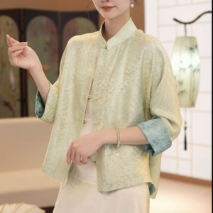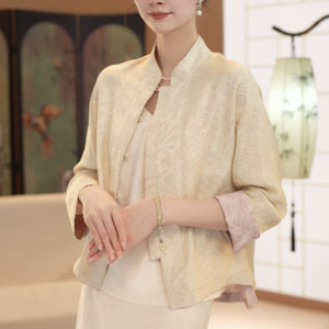 宋锦国风外套双面穿立领盘扣年轻款重工新中式提花上衣女秋季