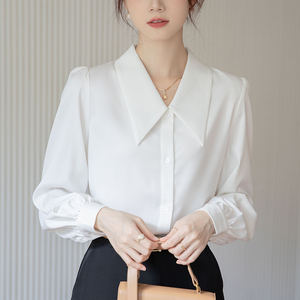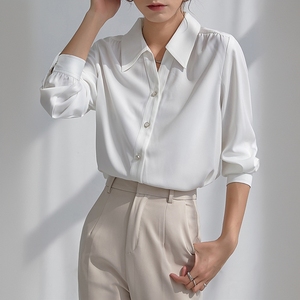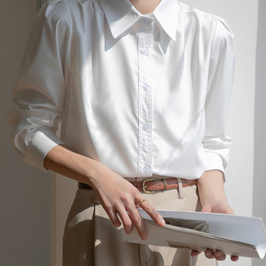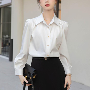 法式正肩长袖白色衬衫女2025春秋季新款通勤职业正装面试内搭上衣