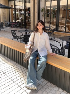 忠犬小八梨形自制蓝松塔复古蓝直筒垂顺牛仔裤女2025秋款宽松