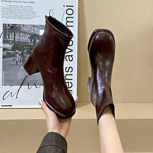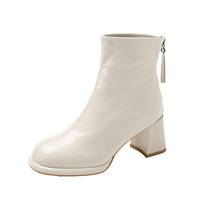 粗跟小短靴2025新款秋冬款高跟瘦瘦靴子白色婚鞋配旗袍鞋子女短靴