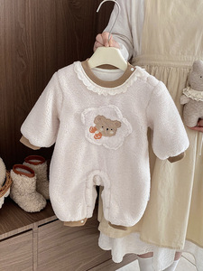 婴儿衣服秋冬装加绒保暖连体衣韩系小月龄女宝宝洋气卡通外出爬服