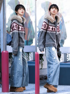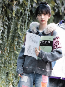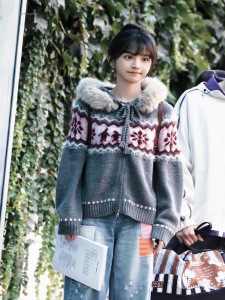 韩系复古费尔岛毛领针织衫开衫拉链毛衣外套女秋季穿搭高级感上衣