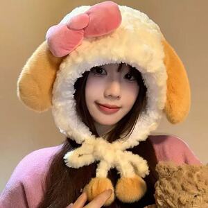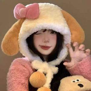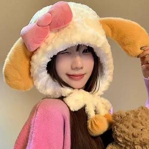 可爱饼饼毛绒雷锋帽子女2025新款秋冬季加厚保暖百搭显脸小护