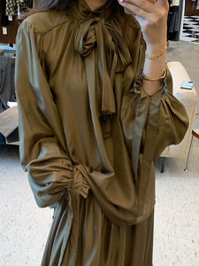 2025初秋新款高级感巨好看苔绿色短裙拼接宽松大裙摆半身裙女