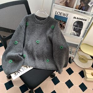 复古刺绣花朵套头毛衣女秋冬2025新款宽松慵懒风高级感韩系针织衫