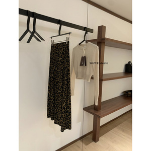 塞纳【WGWE】7088复古豹纹半身裙女A字松紧高腰长裙高级感显瘦