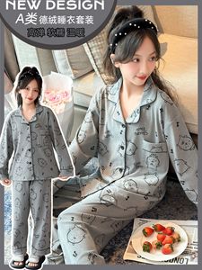 儿童睡衣2025新款冬季女大童德绒家居服女童网红爆款卡通长袖套装