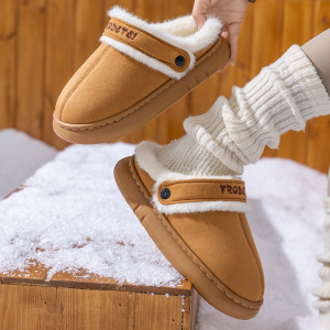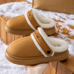 带后跟棉拖鞋女款2025新款冬季室内家居厚底防滑保暖勃肯毛绒拖鞋
