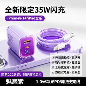 【8-14套装】『魅惑紫-35W』充电器+1.0米PD编织线智能数显