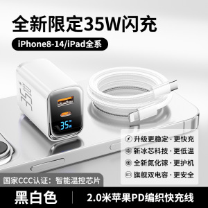 【8-14套装】『黑白色-35W』充电器+2.0米PD编织线智能数显