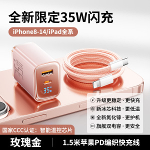 【8-14套装】『玫瑰金-35W』充电器+1.5米PD编织线智能数显
