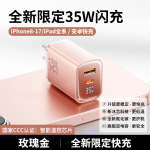 【单头】『玫瑰金-35W』适用iPhone8-17全系/安卓快充智能数显