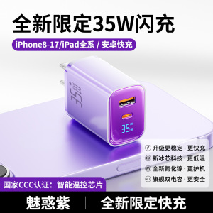 【单头】『魅惑紫-35W』适用iPhone8-17全系/安卓快充智能数显