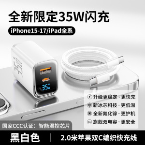 【15-17套装】『黑白色-35W』充电器+2.0米双C编织线智能数显