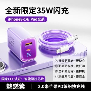 【8-14套装】『魅惑紫-35W』充电器+2.0米PD编织线智能数显