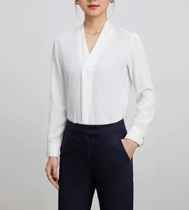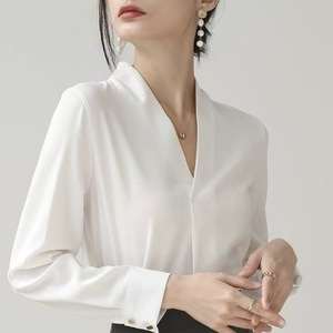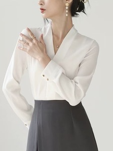 法式初秋长袖上衣雪纺衬衫女高级设计感小众白色V领衬衣2025新款