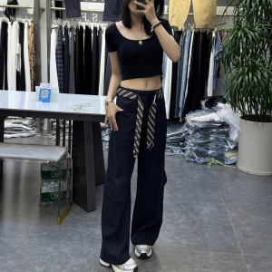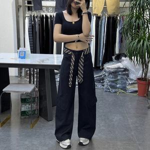 南油批发2025秋季新款休闲时尚阔腿工装裤宽松显瘦慵懒长裤不退换