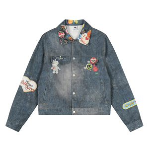 Fudge Pink 25秋季New美式复古个性图案设计牛仔夹克外套