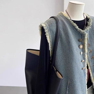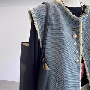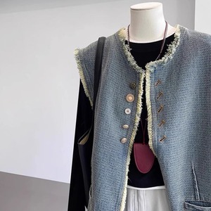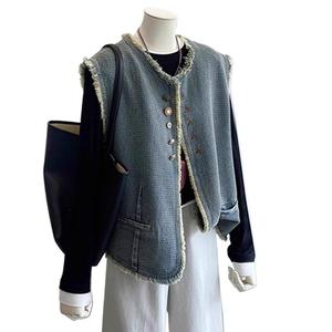 复古毛边牛仔马甲外套女秋2025新款时髦洋气宽松无袖坎肩背心马夹
