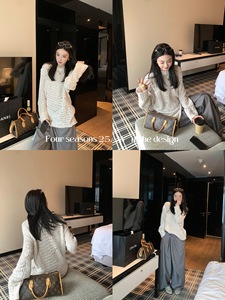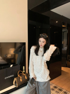 区区欧阳镂空不规则毛衣女秋季新款宽松慵懒风针织衫复古圆领上衣
