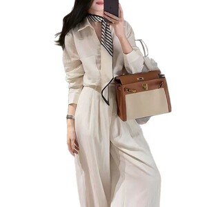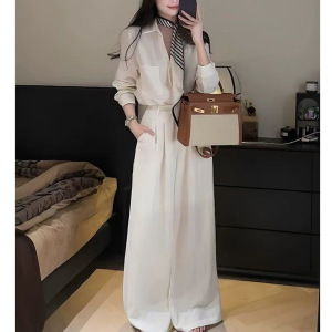 今年流行漂亮高级感时尚气质宽松显瘦极简白色衬衫阔腿裤两件套装