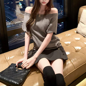 【智性日常】半身裙女秋学院风灰色显瘦中低腰毛呢短裙