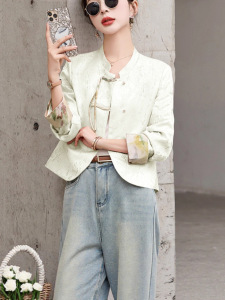 新中式提花国风外套女2025秋季新款小香风好看小个短款上衣A7287