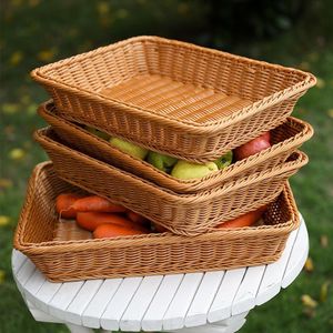 仿藤编收纳筐手工编织面包篮超市果三明治干果盘塑料展示水果篮