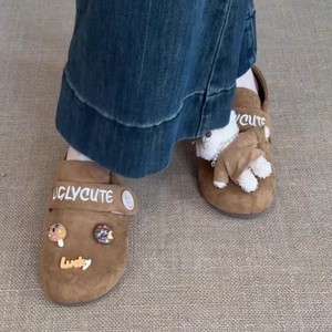 羊皮版~真皮时尚圆头平底勃肯鞋2025新款秋季小熊布偶百搭单鞋女