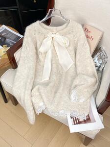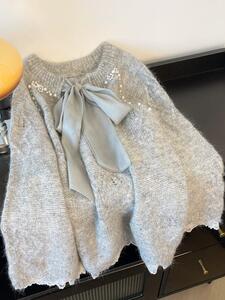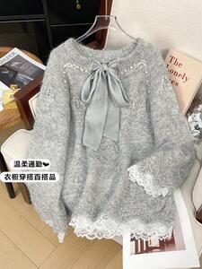 灰色重工钉珠毛衣女款2025新款秋冬季大码中长款遮屁股打底衫上衣
